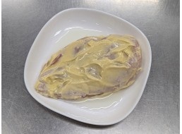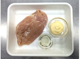 塩、こしょうをしてマヨネーズを塗り、耐熱皿に置いて本みりんをかけ、30分程漬け込む。 -