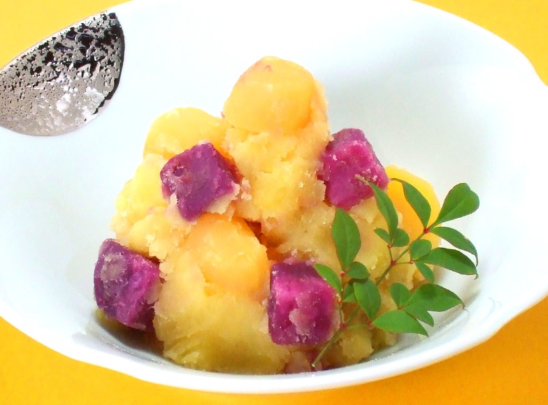 - 紫芋は角切りで混ぜるので、蒸し過ぎには注意する。