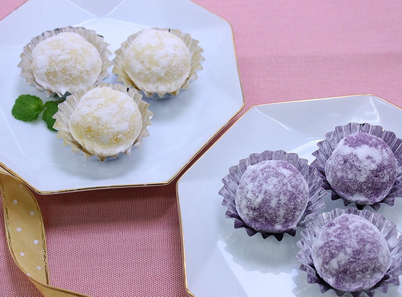 ひと口大(約15g)に丸め、溶けない粉糖をまぶす。(さつま芋も同じ手順で作り、2種類作ります。) -