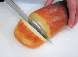 片端を切り落とし、切り取った部分を切り株のようにケーキの上にのせる。 -