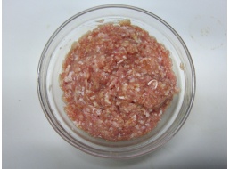 鶏ひき肉に塩・しょう油を加えて良く混ぜ、食べやすいサイズに丸める。 -