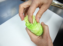 - キャベツの茎の部分はそぎ落とし、みじん切りにして具の中に混ぜ合わせます。